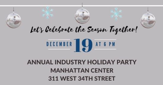 We close out the year with the Annual Industry Holiday Celebration which is being held at the Manhattan Center on December 19. Registration is open.