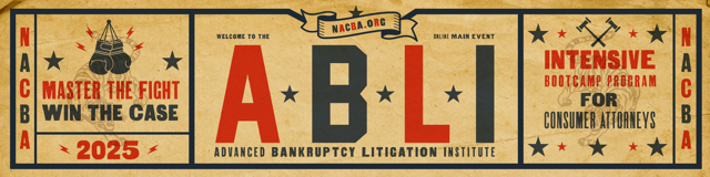 Master the Fight, Win the Case with the American Bankruptcy Litigation Institute, NACBA’s premier training program designed to sharpen your litigation skills and give you the competitive edge in bankruptcy practice.