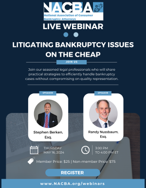 NACBA takes great pride in acknowledging the outstanding efforts of our members who go above and beyond in the field of consumer bankruptcy. We are pleased to announce the winners of NACBA's 32nd Annual Awards, a tradition that allows us to recognize and celebrate excellence within our community.