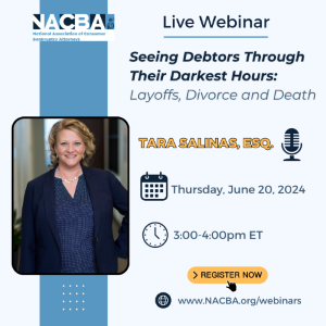 Description: In today’s unpredictable world, consumer bankruptcy attorneys are increasingly encountering clients grappling with significant life challenges such as job loss, divorce, and death. This program will focus on creative strategies for addressing these difficult events, especially in Chapter 13 cases. We will consider plan modifications, hardship discharges, conversion, and bifurcation, along with the factors that impact each choice. By the end of this hour, you will be better equipped to guide your clients through their most challenging circumstances.