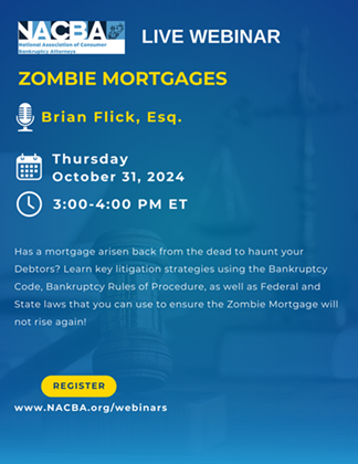 Description: Has a mortgage arisen back from the dead to haunt your debtors? Learn key litigation strategies using the Bankruptcy Code, Bankruptcy Rules of Procedure, as well as Federal and State laws that you can use to ensure the Zombie Mortgage will not rise again!
