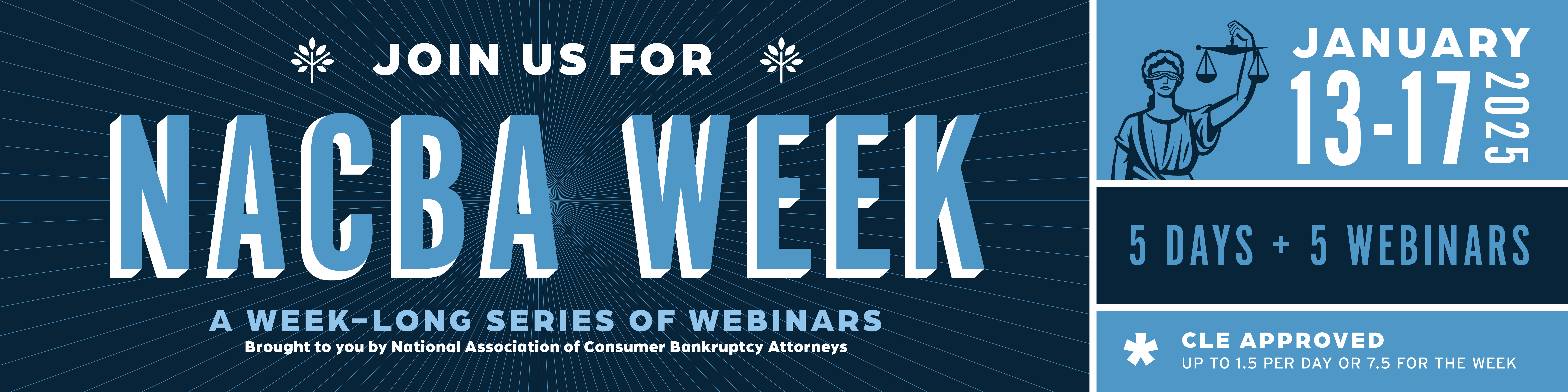 See our full schedule and list of expert speakers. If you specialize in consumer bankruptcy and represent debtors, NACBA's Workshop is the place to enhance your practice. NACBA is your trusted partner in professional growth.