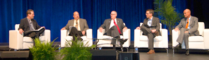 Automaker representatives Fritz Ahadi, General Manager, Ford Motor Company; Frank Dankovich, FCA USA LLC.; Paul Jontig, National Fleet Sales Manager, Toyota Motor Company; and Edward Peper, General Motors. participated in this panel discussion, informing attendees of