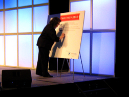 presenting a distracted driving pledge, positioned in the NAFA booth in