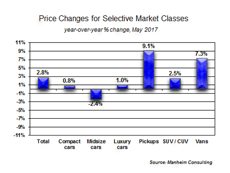 On a year-over-year basis, the mid-sized car category saw the largest decline (down 2.4 percent) in May, while pickups and vans saw gains greater than the overall market.