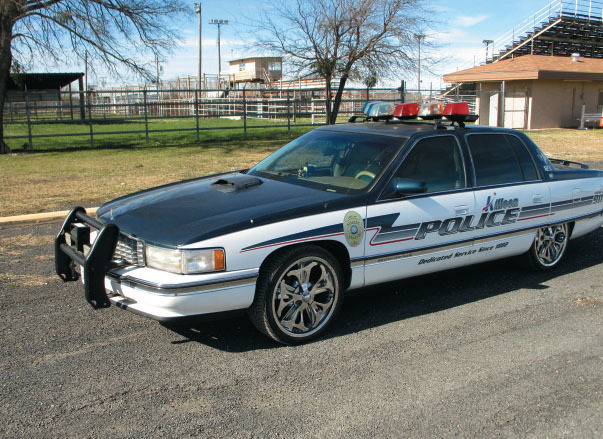 The "it" in question is a 1995 Cadillac Sedan Deville PD Patrol Unit. "The vehicle was donated [through confiscation] by a rather dapper drug dealer," Roach said. "With the help of local businesses, it was outfitted with custom decals, light bar, push bumper, a boomin’ sound system, spinning rims, low restriction exhaust, and even a prisoner isolation cab divider."