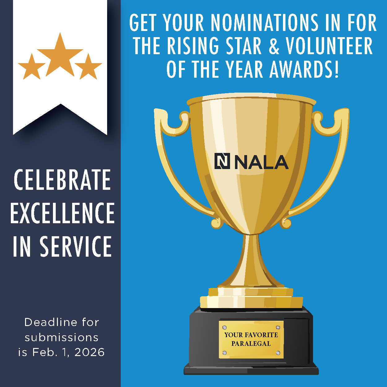Nominees should demonstrate leadership, commitment, ethical conduct, and a dedication to promoting NALA within the legal community. If someone you know comes to mind, take a moment to acknowledge their impact.