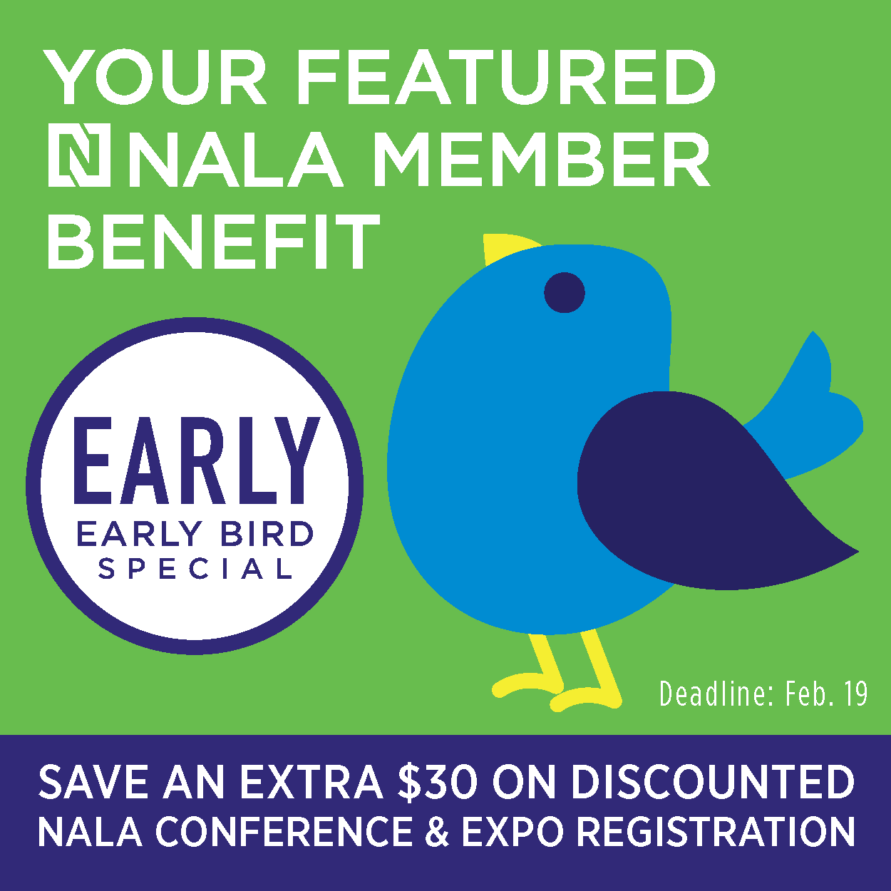 Early Bird registration is open for the 2026 NALA Conference & Expo in Denver, Colorado, from July 16th through 18th. In addition to getting the discounted member rate, you can also save an additional $30 when you register to attend the full conference by February 19th. This is the lowest price available for members, so be sure to lock in this deal and register today. Paying with an installment plan? You can still get the extra savings if you complete your payments by February 19th.