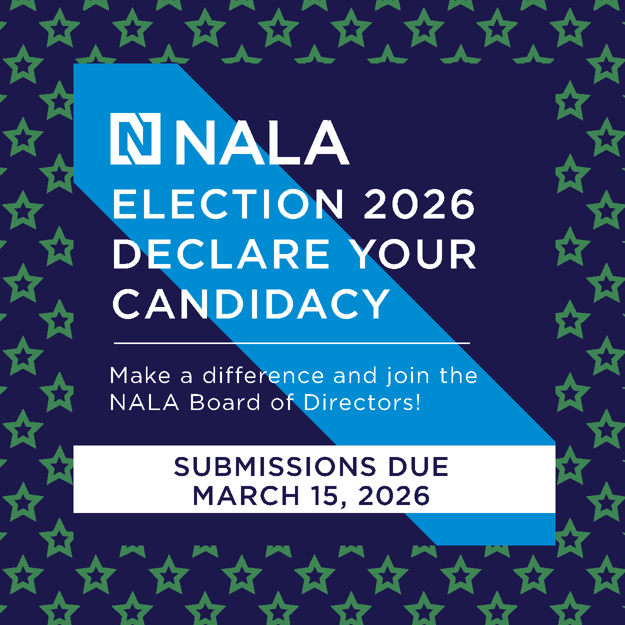 Are you interested in serving on NALA’s Board of Directors? We are accepting candidacy declarations until March 15. If you meet the qualifications to run, you must complete and submit the Declaration of Candidacy packet by the deadline to be considered.
