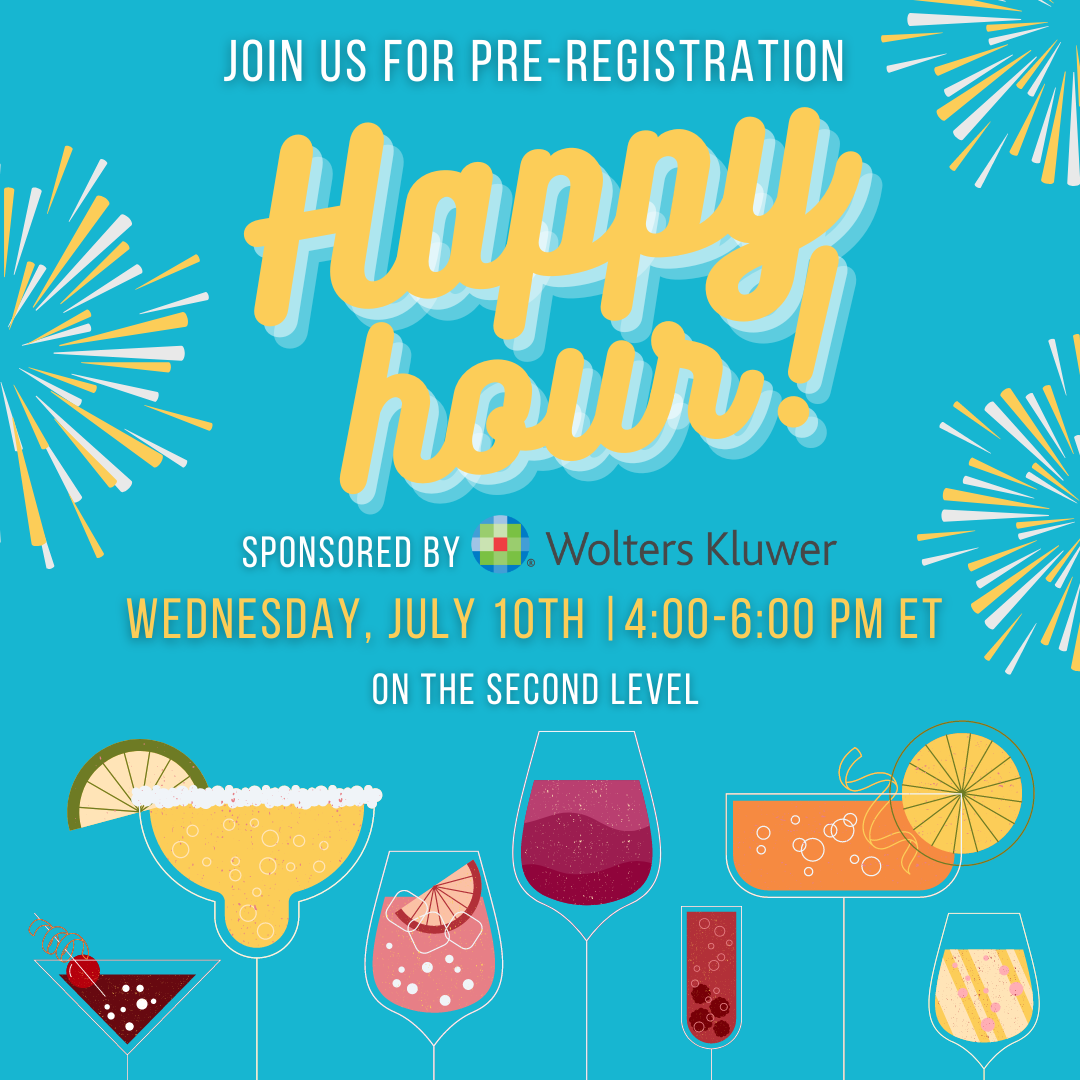 The party starts on Wednesday, so prepare to arrive early! Book your flight to get in by Wednesday afternoon, and join us for pre-conference registration and Happy Hour on Wednesday, July 10th. You will be greeted with a complimentary drink voucher for Happy Hour, happening from 4-6 p.m. ET. Join us on the second level, complete your check-in, grab your swag bag and drink voucher, and kick off the conference in style! This Happy Hour is generously sponsored by Wolters Kluwer, adding an extra layer of enjoyment to your networking experience. Do not pass up this fantastic chance to jumpstart your connections.