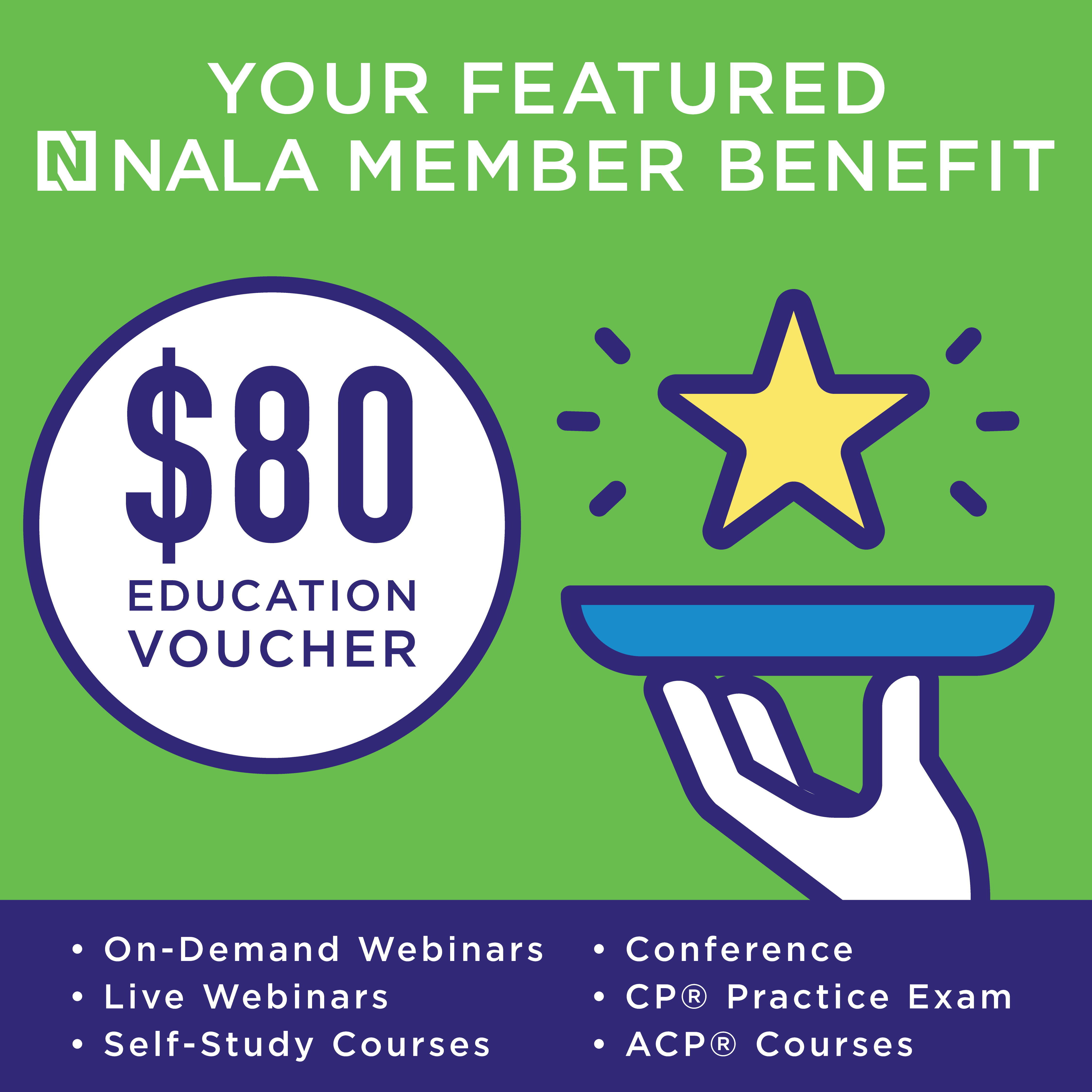 Did you know Active type members receive an $80 education voucher each time they renew? If you are an Active type member, this voucher is an exclusive benefit you can redeem on any of NALA’s educational offerings. While NALA no longer sends out a physical or digital voucher, you can still access these savings by calling or emailing our office. To help you decide what to use your voucher on, click here for a list of eligible products that you can save on.