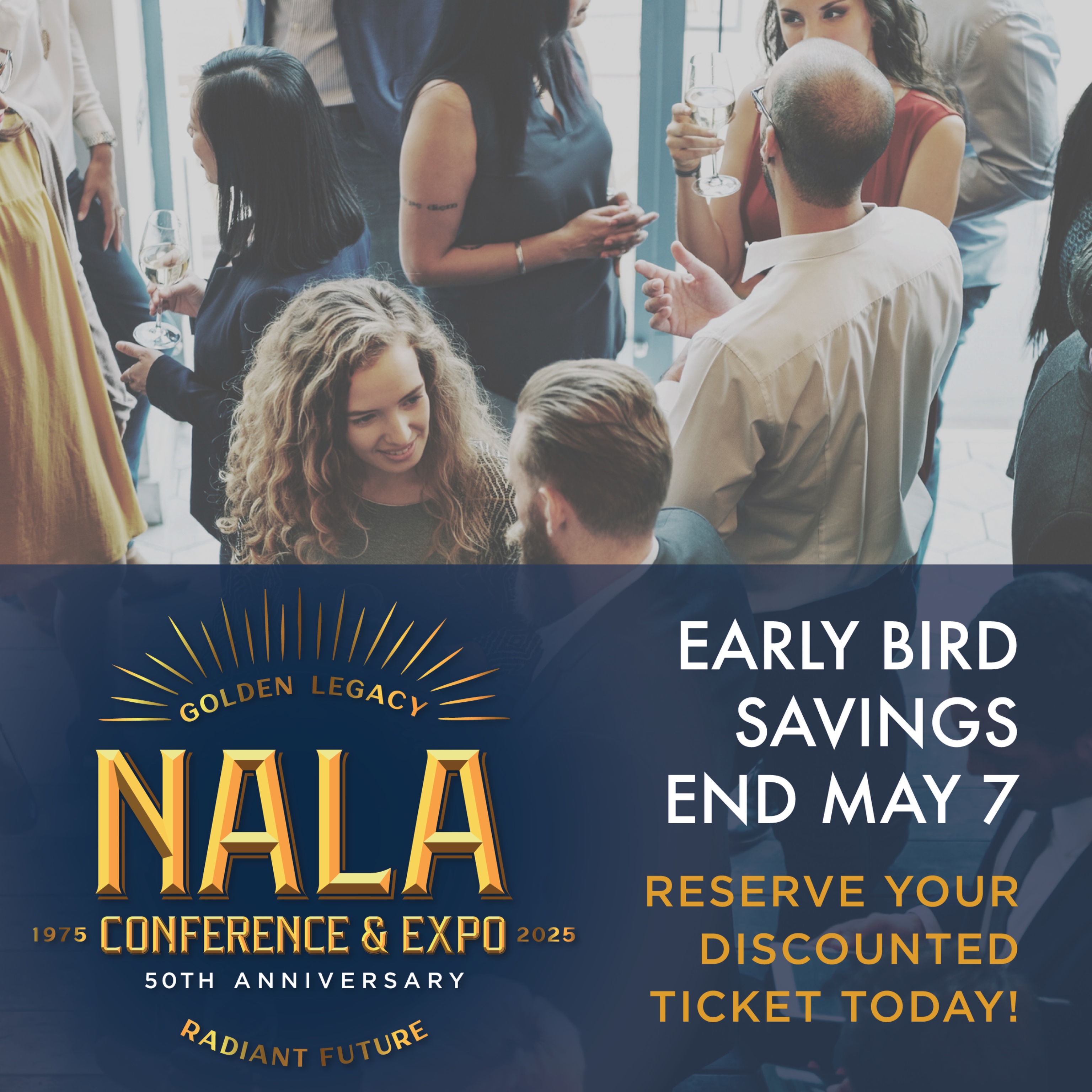 Come celebrate NALA’s 50th anniversary at the 2025 NALA Conference & Expo in Atlantic City, New Jersey, from July 10-12! Save $70 with Early Bird pricing when you register by May 7th! Do not miss this milestone event and the opportunity to earn up to 12.5 CLE hours while you network, socialize, and explore.