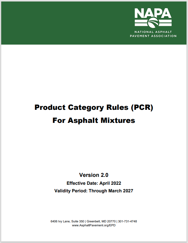 NAPA is soliciting comments on the Product Category Rules (PCR) for Asphalt Mixtures from the stakeholder community in its role as the North American program operator. The comment period closes Sept. 15. Stakeholders can access the documents to review on NAPA's webpage and use the review form to enter comments.
