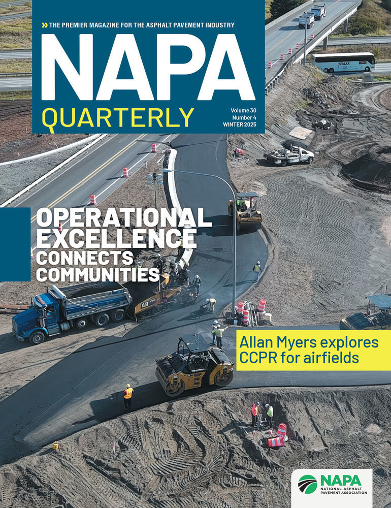The Winter 2025 issue of NAPA Quarterly is in print and online, bringing stories from the three 2024 winners of NAPA’s Community Engagement Awards, as well as the latest in research into cold central plant recycling.