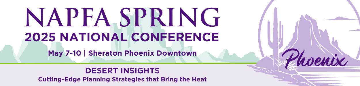 We are extremely excited for the upcoming 2025 NAPFA Spring Conference in Phoenix, Ariz., from May 8–10, with pre-conference sessions on May 7. The theme for this conference is Desert Insights: Cutting-Edge Planning Strategies that Bring the Heat. We are confident all attendees will be exposed to new ideas and advanced planning concepts that will be invaluable to adding value to the client relationship.