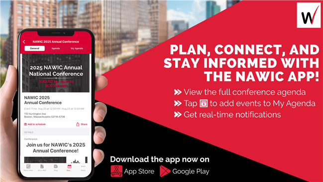Don’t miss a moment—download the NAWIC App and get connected today! Download for FREE in the App Store and Google Play Store, under NAWICNational.