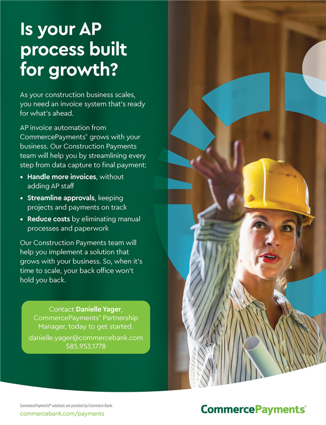 New infrastructure is the backbone of a healthy economy. From a sprawling outdoor shopping mall to a streamlined highway overpass, people around the country depend on the construction industry to draft, develop, and modernize infrastructure to conduct business and create meaningful interactions. But for many contractors, the equipment that powers their business goes beyond just excavators and concrete mixers. Behind the scenes, back offices are looking for ways to create profitability, increase visibility into payments, reduce fraud risks, and decrease costs overall. When it comes to serving the construction industry, Commerce Bank has the experience, structure, and stability to provide robust solutions for your organization. Click the link below to learn more.