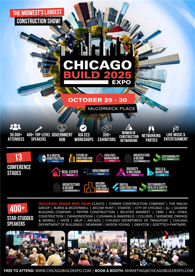 Chicago Build Expo (Oct 29-30, McCormick Place), is the largest construction & design show for the Midwest.