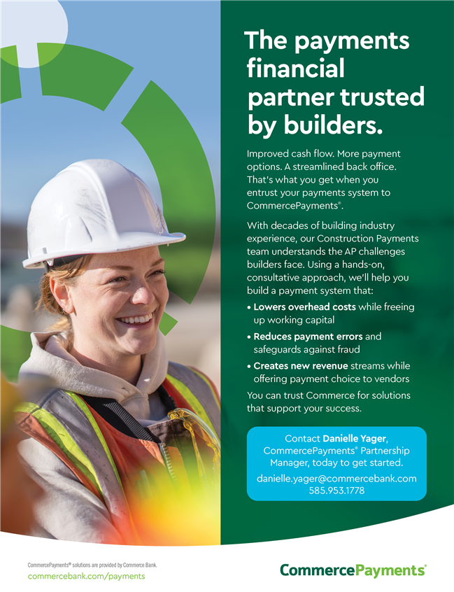 New infrastructure is the backbone of a healthy economy. From a sprawling outdoor shopping mall to a streamlined highway overpass, people around the country depend on the construction industry to draft, develop, and modernize infrastructure to conduct business and create meaningful interactions. But for many contractors, the equipment that powers their business goes beyond just excavators and concrete mixers. Behind the scenes, back offices are looking for ways to create profitability, increase visibility into payments, reduce fraud risks, and decrease costs overall. When it comes to serving the construction industry, Commerce Bank has the experience, structure, and stability to provide robust solutions for your organization. Click the link below to learn more.