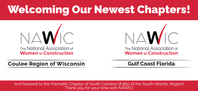 Here at the NAWIC National Office, we want to offer a warm welcome to our two new Chapters, the Coulee Region of Wisconsin and Gulf Coast Florida! Chartered on Saturday, September 13th, we are so excited to add Chapter #399 to the Midwest Region and Chapter #400, Gulf Coast Florida of the Southeast Region, is set to charter early October.