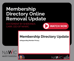 We are improving data privacy by updating our Member Directory distribution practice. Membership directory reports are sent monthly to Chapter Presidents, Membership Chairs, and National Directors, to support their NAWIC roles. Members can submit requests for messages or notices for distribution to specific segments or the entire membership by emailing nawic@nawic.org. To promote member engagement while protecting privacy, we will be piloting a new feature within the NAWIC Mobile app in the coming weeks. For more details on this update instituted to safeguard member privacy, watch CEO Sheronda Carr’s video.