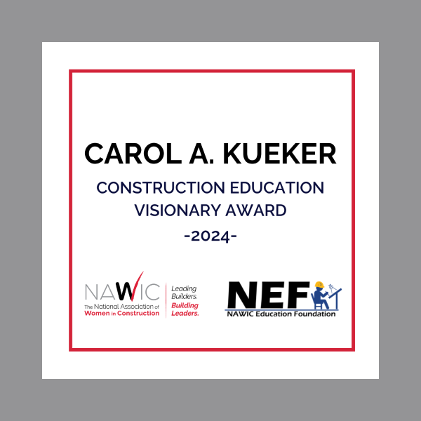 The Carol A. Kueker Construction Education Visionary Award recognizes individuals for their passion and dedication to NEF programs and the promotion of construction education.