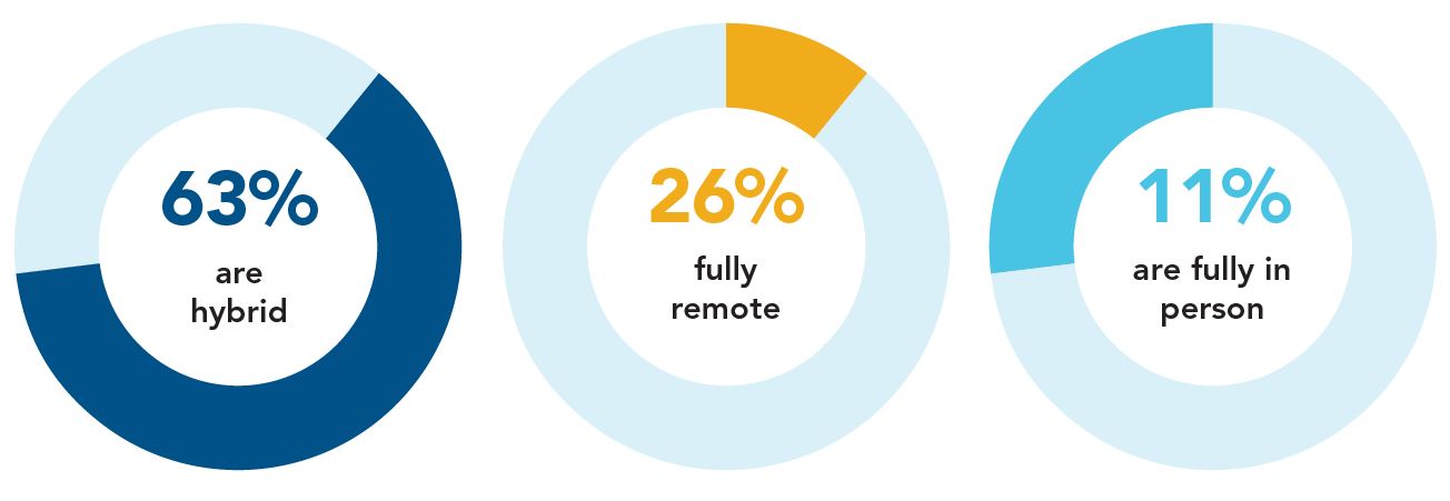 More than half of association professionals who took the 2023 Association Benchmarking Report said their organizations are appropriately staffed in most areas, an increase from last year. This is not a surprise with record employment levels in the past year. While COVID-19 is at a lower level of concern, full-time employees still prefer to work from home some of the time. This year, respondents report that 11% are fully in-person, 26% fully remote and 63% are hybrid. As noted last year, the hybrid model allows associations to hire the best team members for jobs regardless of their location. This flexibility means the right team members in roles that ideally correlates to the association’s long-term success with their annual member engagement and non-dues revenue plans.