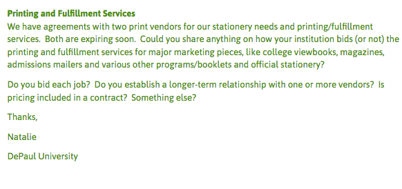The NAEP Exchange is the place to ask your questions, seek best practice advice, and search for RFP assistance. The Exchange is a members-only benefit which means no prying eyes from suppliers; this is a place to ask questions of your higher education procurement colleagues from across the country.