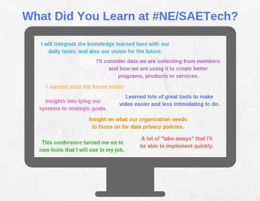 Thank you to everyone who participated in this year's Technology Conference, including our attendees, exhibitors, and live demo sponsors! This year's conference gathered 80 association executives and industry partners for a full-day of educational sessions, networking, exhibits, and live demos. Here are just a few of the takeaways attendees left with: