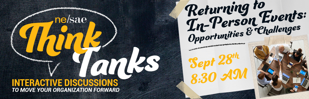 NE/SAE Think Tanks are virtual opportunities for members to discuss timely topics, assess emerging trends, and share challenges and success stories with one another. Think Tanks are held on the last Tuesday of each month for one hour. The full schedule for the remainder of 2021 is below. Registration is free for NE/SAE members, but pre-registration is required.