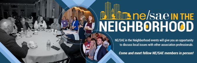 NE/SAE began hosting the free NE/SAE in the Neighborhood series this month! Our first event is tomorrow (January 31) at the Massachusetts Assisted Living Association (Mass-ALA) in Waltham, Massachusetts. There's still time to join the conversation for the January event! February's NE/SAE in the Neighborhood will be hosted by the Renaissance Providence Downtown Hotel on February 15 from 6 p.m. to 7 p.m. Let us know you'll be there by registering now! NE/SAE in the Neighborhood are one- to three-hour events will take place at various locations throughout New England. These short get-togethers are a great opportunity for networking and open discussions of current association issues. Do you have a concern that is unique to your state? NE/SAE in the Neighborhood events will give you an opportunity to discuss local issues with other association professionals. Or, just come and meet fellow NE/SAE members in person!