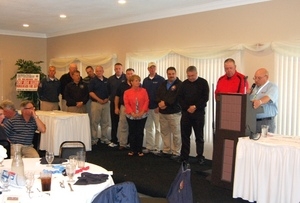 NYSAFC 1st Vice President Chief John Tighe, Director Bud Phillips, along with members of the late Chief Richard G. Sullivan's family (including wife, Carol, and brother Chief Arthur Sullivan of the Horseheads Fire Department), and members of the Horseheads Fire Department receive the "Foundation Golf Tournament Tribute Award." Richard Sullivan was lost in the line of duty in 2006.