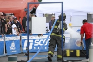 The Challenge seeks to encourage firefighter fitness and demonstrate the profession's rigors to the public. Wearing full bunker gear and the SCOTT Air-Pak breathing apparatus, pairs of competitors race head-to-head as they simulate the physical demands of real life firefighting by performing a linked series of five tasks including climbing the five-story tower, hoisting, chopping, dragging hoses, and rescuing a life-sized, 175-pound "victim" as they race against themselves, their opponent, and the clock.