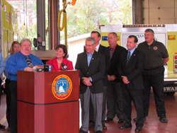 Pictured above, at left: Past Chief Art Hunsinger of the Clifton Park Fire Department, State Senator Kathy Marchione, Assemblyman James Tedisco, NYSAFC Pub Ed Committee Vice Chairman Tim Boel, and other local officials at the press conference held in Clifton Park, N.Y.