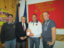 Pictured above, at right: Chief Greg Burnell (District #3 Fire Department of the Town of Plattsburgh), Director George Rivers (NYSAFC board of directors), Chairman Scott Ewing (NYSAFC Pub Ed Committee), and Chief Michael Cross (Ausable Forks Fire Department) at the project training held in Clinton County.