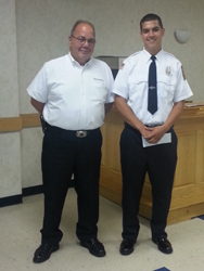 Pictured: 2nd Vice President Joe Fahd with scholarship recipient Tyler Holmes (North Bethlehem F.D.). Holmes was recognized on July 9, 2014, during the department’s monthly meeting in Albany County. Courtesy of Paul Miller.