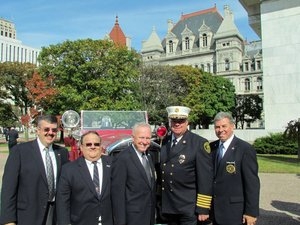 The ceremony began with the Color Guard of the Albany Fire Department presenting the colors, followed by the singing of our National Anthem by Lt. Anthony Rich of the FDNY. The invocation was given by Rabbi Joseph Potasnik from the New York Board of Rabbis. A prayer for firefighter safety was presented by Rev. Gerald J. Buckley, chaplain of the New York State Professional Firefighters Association.
