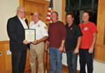 Pictured L to R: NYSAFC Past President Don Corkery, Centerport Fire Department Ex-Chief James Feeley, Chief Brian Mark, 1st Assistant Chief Tom Boyd, and 2nd Assistant Chief Rich Miltner.
