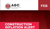AGC of America released the February edition of its Construction Inflation Alert. This document is intended to inform project owners, government officials, and the public about the extreme cost increases and supply-chains disruptions affecting construction. The current version of the Alert can be accessed by visiting AGC Construction Inflation Alert | Associated General Contractors of America.