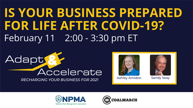 Pest control business owners and upper managers are encouraged to join us virtually for this four-week conversational series that kicks-off THIS THURSDAY with a highly anticipated session to prepare your business for post-pandemic life. With a new year of business ahead and a changing political and social landscape, learn from your peers and industry experts on how to not only thrive in 2021 but how to adapt and accelerate your business for greater success.