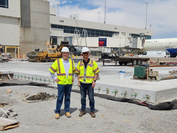 NRMCA Senior Director, Local Paving, Greg Halsted recently gave a lunchtime presentation to engineers with Denver International Airport (DEN) who then invited him to visit active concrete pavement projects at the airport, both landside and airside. Halsted addressed 17 attendees on July 15, specifically on the NRMCA Pave Ahead program, covering the goals, objectives and available resources of the initiative. One major focal point was the importance of collaborative project assistance among NRMCA, ready mixed concrete suppliers, paving contractors and the owner/architect/engineer community. It was apparent that DEN engineers were pleased to be included as part of the process, Halsted said. Jamie Johnson, the new executive director of the Colorado/Wyoming Chapter of ACPA, was also on hand to offer his association’s support and assistance with concrete paving. Hosted by Clint Sciacca, project manager at DEN (seen here on the right with Halsted), the tour started on the landside of things with a visit to one of the phases of the Peña Boulevard construction project. Produced and placed by FlatironDragados and following Colorado DOT specifications, Halsted and Johnson saw crews placing, finishing and curing an 11-inch-thick section of JPCP (with 15-foot transverse jointing). Interestingly, the coarse aggregate used in the subbase material directly underneath the pavement was totally comprised of recycled concrete aggregate (RCA) from sections of concrete pavement that were removed as part of the major work in the airport vicinity. DEN inspectors reported that all concrete paving operations were proceeding as planned with very few issues, Halsted said. On the airside, the tour stopped at the ongoing Gate Apron Reconstruction and Drainage Improvements (GARDI) project at Concourse A. Produced and placed by Millstone Weber, and following FAA specifications, Halsted and Johnson witnessed crews preparing subgrade and subbase for 17-inch-thick concrete pavement (up to 21” at thickened edges or structures). The entire DEN pavement structure is truly impressive considering the thick concrete section sits on top of four inches of cement-treated base, three inches of hot mix asphalt and, finally, 12 inches of cement-treated subgrade, Halsted noted. Just like on the landside project, airside project personnel reported no problems with the concrete paving work around the terminals at DEN. The construction sites visited are just two of the many concrete pavement projects in progress or soon to start around DEN; both are utilizing portland-limestone cement (Type IL), and alone account for well over 50,000 cubic yards of concrete. Sustainability is being achieved on both projects by using Type IL cement and the incorporation of RCA where possible. Both the office and field events were excellent ways to stress to DEN the assistance and support available to them through NRMCA, ACPA and industry members. For more information, contact Greg Halsted at ghalsted@nrmca.org. Calendar