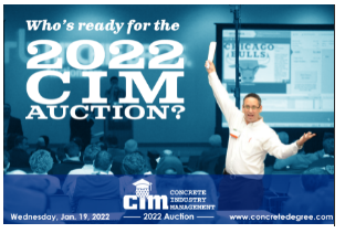 “The proceeds from the 2022 CIM Auction enable the CIM National Steering Committee (NSC) to support the current CIM programs at Middle Tennessee State University, New Jersey Institute of Technology, Texas State University, California State University – Chico, South Dakota State University and the Executive MBA program as well as to help fund scholarships,” said Ben Robuck, chairman of the CIM Auction Committee. Once again, CIM Auction organizers are hoping for another record event in 2022. According to CIM Marketing Committee Chairman Brian Gallagher, the 2021 auction, while not a record-breaker, raised an impressive $1.150 million in gross revenue. “The annual CIM Auction is a critical funding mechanism for CIM,” said Gallagher. Previous auction items have included concrete mixer trucks, cement, skid steers, concrete saws, drills, mixers, vibrators, scaffolding, safety equipment, screeds, fiber transport systems, dust collectors, NDT equipment, decorative concrete tools, water meters, pumps, generators, training sessions, reference books, advertisements, laptop computers, mobile computers, sports memorabilia, sports travel packages, golf packages and vacation travel packages. Those interested in making a donation should contact CIM Auction Committee Chairman Ben Robuck at ben.robuck@cemex.com or 404-456-6867 or download the donation package here.