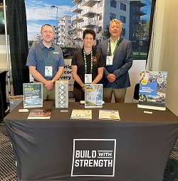 NRMCA Senior Directors, Building Innovations, Brandon Wray and Patrick Matsche recently represented Build With Strength (BWS) at the Structural Engineers Association (SEA) of California’s annual conference held in Portland, OR. The event was co-hosted with delegates from Northwest SEA’s, including Oregon, Washington, Idaho, Montana and British Columbia, resulting in a robust and diverse set of designers spanning the bulk of the West. The BWS team was also joined by NRMCA member and NRMCA Promotion Committee Sustainability chairwoman Melissa Verwest of Knife River (seen here, left to right, are Wray, Verwest and Matsche). Over the course of two days, the team connected with structural engineers on the topics of performance specifications, sustainability, resilience and innovative concrete technologies. “The design community has a hardy appetite for knowledge pertaining to the efficient use of concrete as a material,” said Wray after presenting on Resilient and Sustainable Concrete Design Considerations. Designers are routinely held to a standard that requires them to be on the record as experts in the materials they design with. Such pressure makes NRMCA resources paramount to their own success, which becomes even more apparent as the BWS team is routinely pulled into projects as material experts to help concrete reach its full potential. For questions regarding the event, contact Brandon Wray at bwray@nrmca.org or Patrick Matsche at pmatsche@nrmca.org. ConcreteWorks