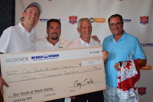 Casey Savlov of Aconex presented MySafeWork with a cheque in the amount of $1,000. Aconex sponsored a hole in one contest but since there was no winner of that, they generously provided an alternative.