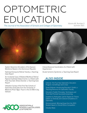ASCO’s Journal, Optometric Education, is now available at https://journal.opted.org. Volume 46, Number 3 issue of Optometric Education is full of peer-reviewed articles including a Teaching Case Report on Ocular Ischemic Syndrome.