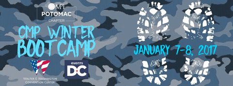 When: Thursday, January 5, 2017 4-7:30 p.m. Where: Sofitel Washington DC Lafayette Square 806 15th Street NW Metro: McPherson Square Washington, DC 20005 Saturday, January 7, 2017-Sunday, January 8, 2017 8 a.m.-5 p.m. The MPI Potomac CMP Winter Boot Camp is a two-day course facilitated by local, experienced CMPs. The course includes handouts for each domain, complete information about the exam, and test taking tips. Some of the many benefits of being a part of the study course include: * Clarification of complex material and concepts * Great time management assistance * Learning CMP test-taking tips * Support and encouragement News & Announcements