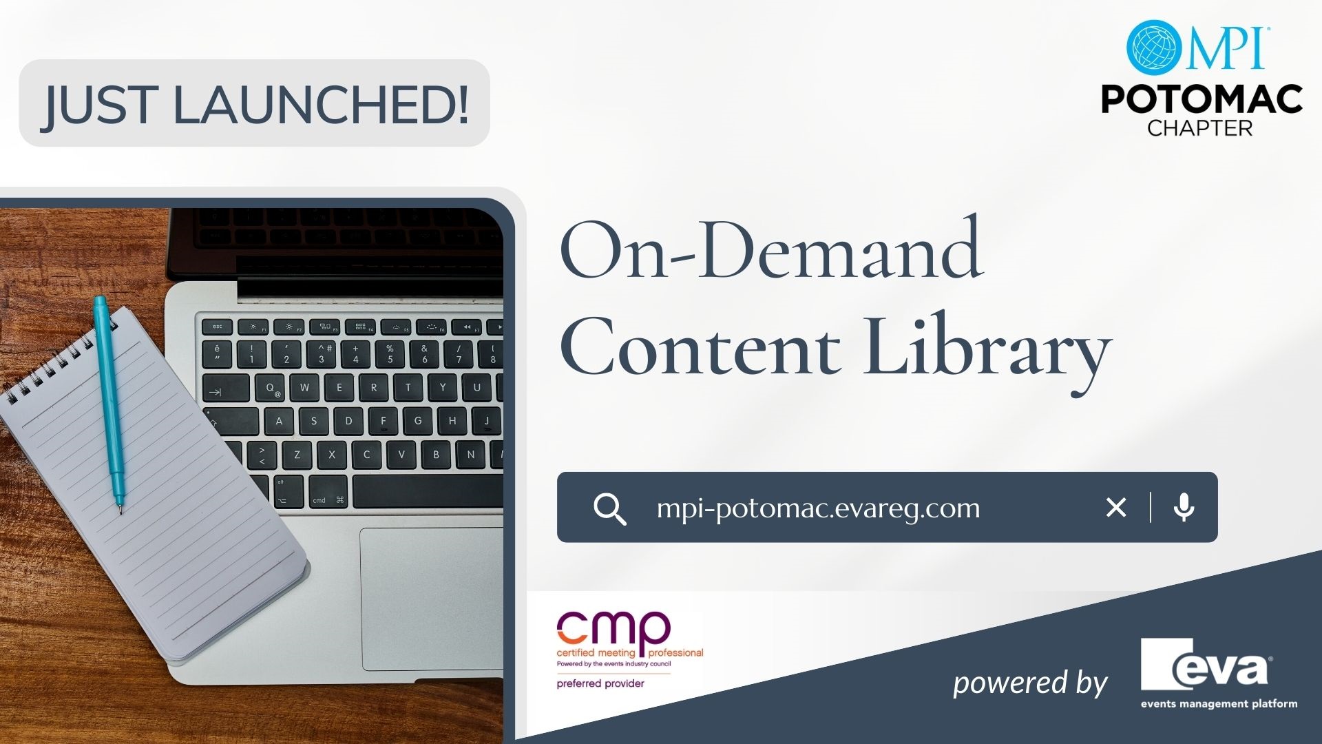 In partnership with Events Management Platform (EVA), MPI Potomac has yet another educational tool available for you to learn and earn clock hours. The On-Demand Content Library contains a wide range of accredited, educational CMP online programs designed for event and meeting planners to further their professional development.