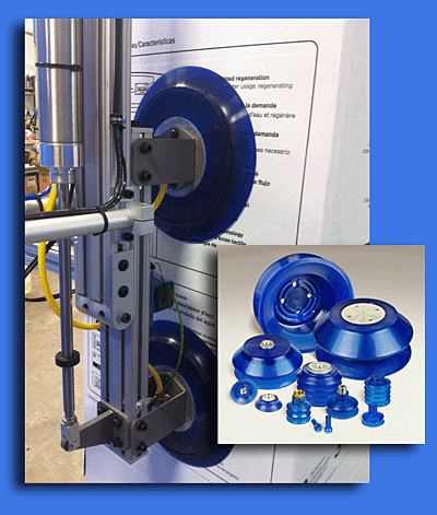 An extensive online catalog, searchable by cup attributes such as diameter, height, width, and more, is available online. Accessories such as level compensators, swivel joints, vacuum valves, and fittings and adaptors to enhance vacuum cup effectiveness are also available. Vi-Cas can quote custom designs from customer-supplied drawings, or reverse engineer from customer-supplied cups. Free samples are available.