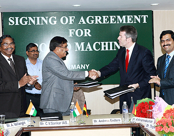 In the photo, representatives from TNPL and Voith at the signing ceremony (l-r) are: A. Velliangiri, Dy. managing director and C.V. Sankar, chairman and managing director from TNPL; A. Endters, president of Voith Paper Projects, and R. Krishna Kumar, president of Voith Paper India.