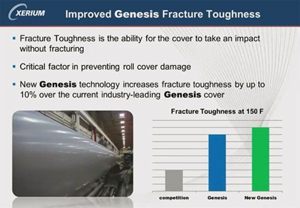 "The roll technology team is proud to unveil yet another step change in roll cover performance on these demanding calender applications. Genesis XTi and Genesis APi roll cover technologies were developed to address our customers' requests for increased life and improved roll durability," said Bill Butterfield, EVP and CTO of Xerium. "Composite calender covers operate under the most demanding load conditions for nipped roll covers and these new generations of Genesis covers have been developed to improve crack and barring resistance while ensuring maximum gloss for critical grades. We are continually striving for innovations enabling our customers to achieve new performance levels by applying our technology."